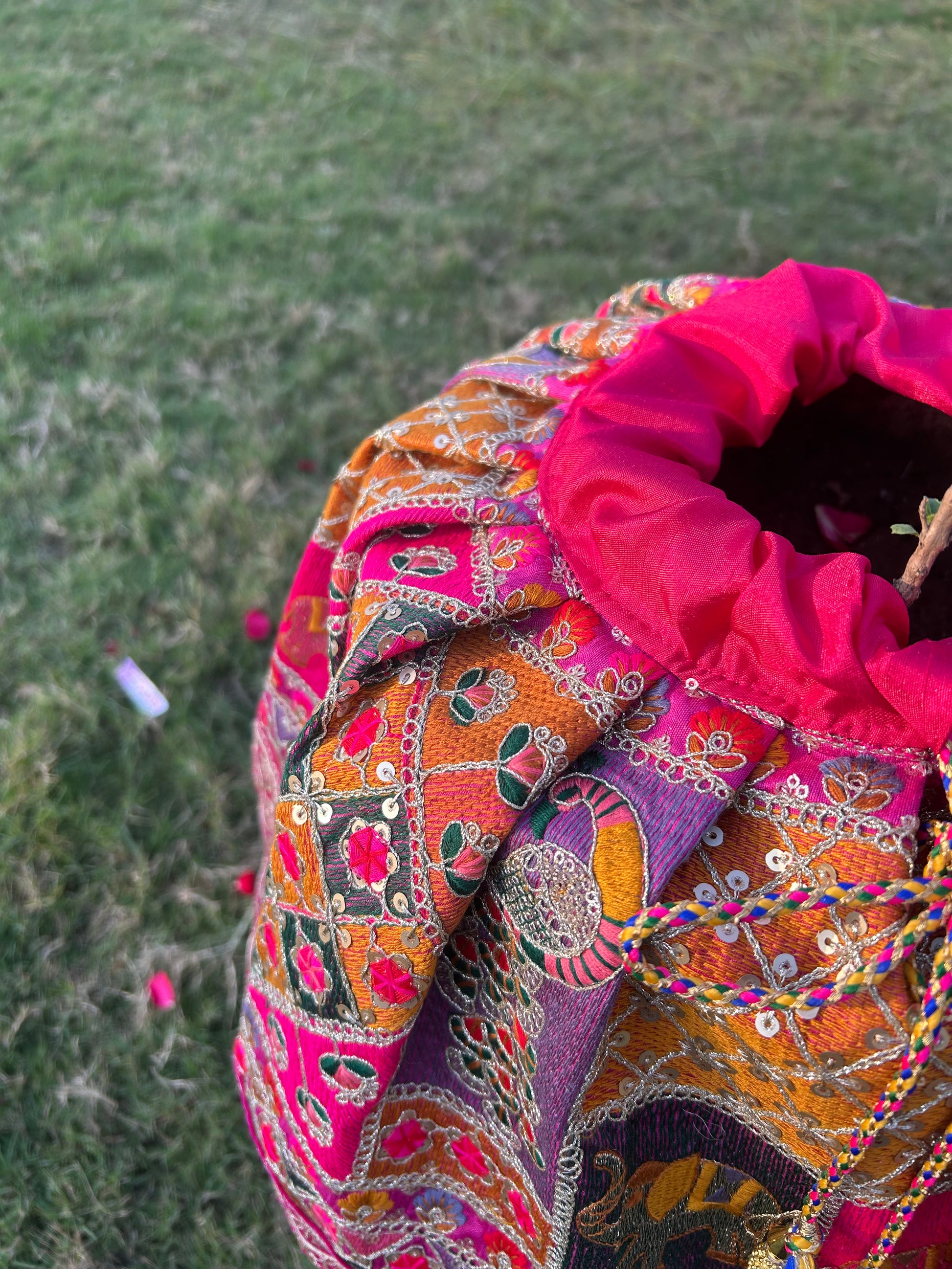 Designed to sit beautifully around the Tulsi plant, this vastra reflects mindful craftsmanship and a calm devotional aesthetic—allowing your offering to remain heartfelt and serene.