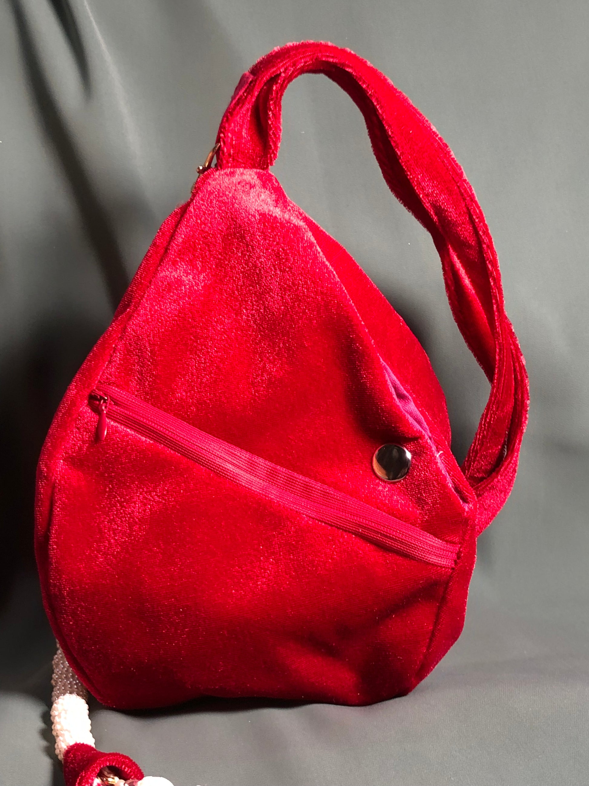 Red beaded Lotus Velvet Japa Bag